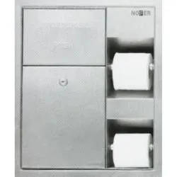 Компактный встраиваемый шкаф выполнен из нержавеющей стали AISI 304.В устройства входят: два держателя для туалетной бумаги и съёмный контейнер для отходов..Предназначен для внутренней установки. Контейнер для мусора оснащен замком с ключом. Держатели для туалетной бумаги под стандартные рулоны. Цвет стали матовый. Цельная конструкция без острых углов. Размеры (при установке): высота 458 x ширина 388 x глубина 108 (мм). Емкость контейнера-7,5 л.