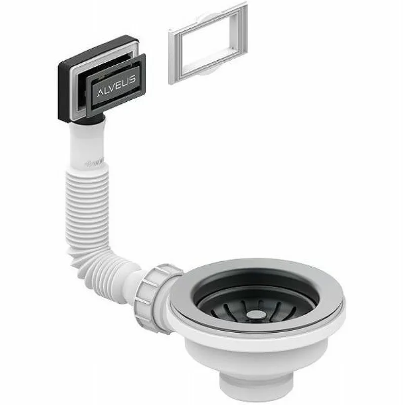 Выпуск для кухонной мойки Alveus 1144843 c рамкой и заглушкой (гофра).Характеристики: Цвет: антрацит (Anthracite). Материал: нержавеющая сталь AISI 304, пластик. Покрытие: PVD. С переливом. Диаметр слива: 90 мм. В комплекте поставки: Выпуск. Корзинчатый вентиль. Перелив. Рамка и заглушка для перелива.