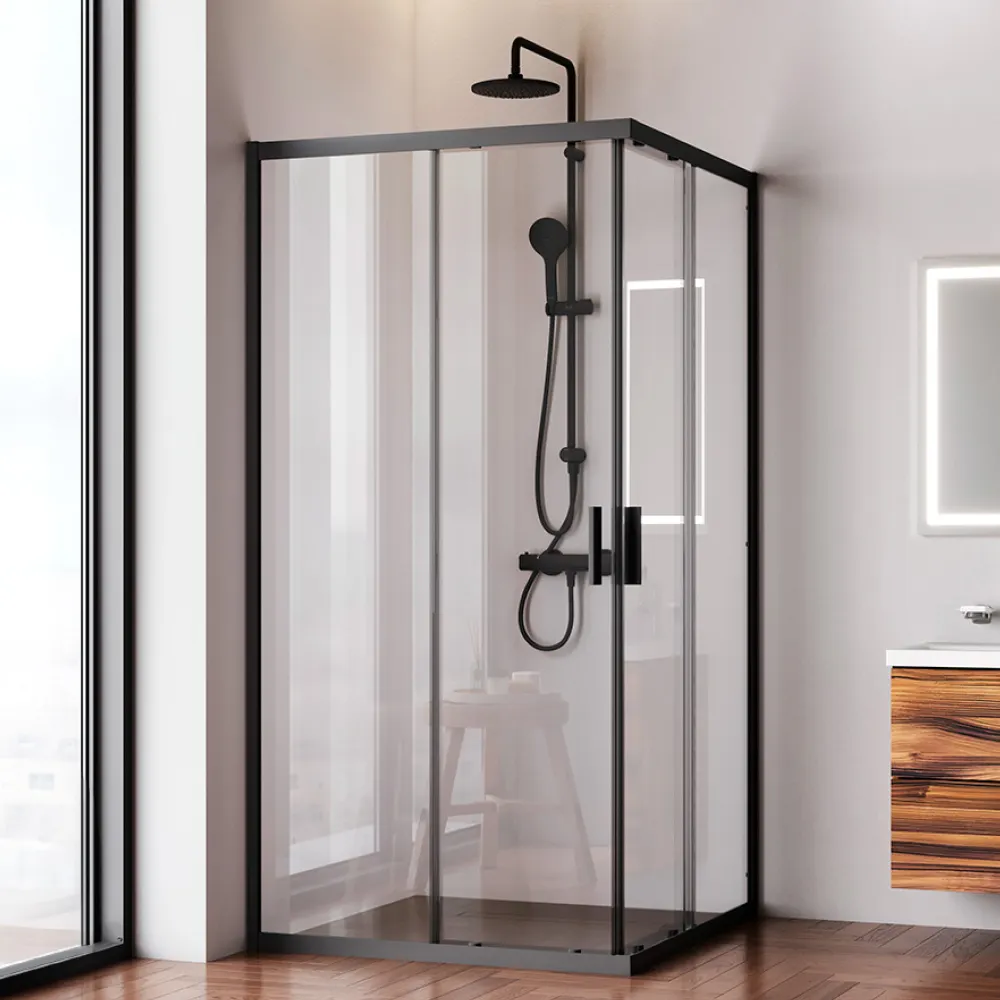 Gem душевое огражд квадратн.,раздвиж.двери 100x100 черный мат.,стекло прозрачн арт-W90G-403-100100-BT