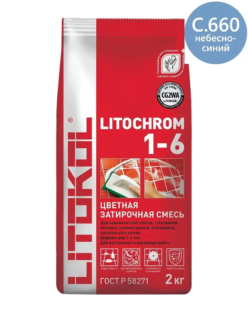 Затирочная смесь Litokol LITOCHROM 1-6 C.660 небесно-синяя (2 кг) арт-346560002