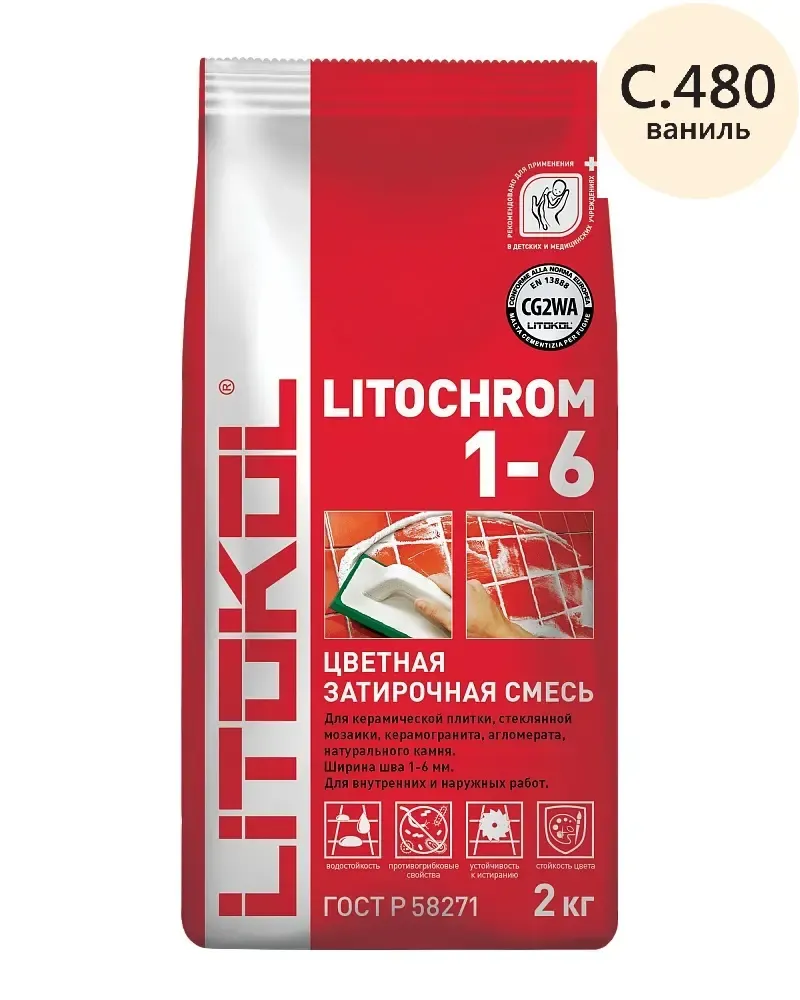 Затирочная смесь Litokol LITOCHROM 1-6 С.480 ваниль (2 кг) арт-248470003