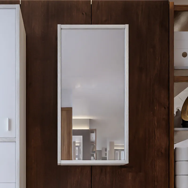 - Подвесная установка: Зеркальный шкаф легко монтируется на стену, что позволяет сэкономить пространство в ванной комнате.