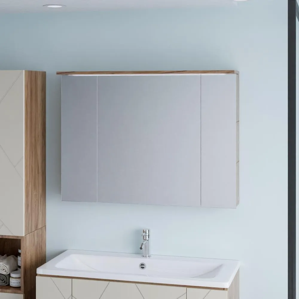 Зеркальный шкаф Бриклаер КРИСТАЛЛ 95 см, дуб крафт табачный арт-4627125417214
