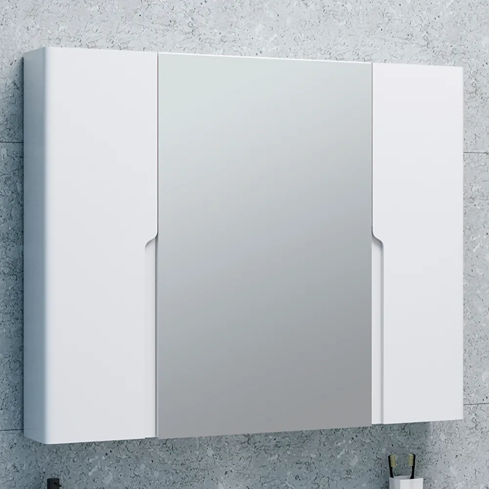 Коллекция мебели PALERMO практична, функциональна и отвечает всем требованиям современного дизайна. Плавные линии фасадов дополняет оригинальный вырез под ручку, который придает всей коллекции особую индивидуальность. Фасады и корпус мебели изготовлены из влагостойкого МДФ с лакокрасочным эмалевым покрытием, обладающим высокой устойчивостью к ультрафиолету, повышенной температуре и влажности. Зеркальный шкаф PALERMO 100см без подсветки, c тремя распашными дверками. Внутри шкафа - две горизонтальные полки. Зеркальная дверка шкафа открывается с помощью механизма Push-To-Open. Петли со встроенным доводчиком.