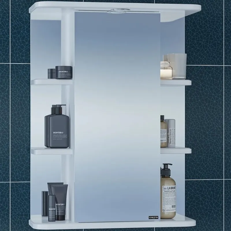 - Многофункциональность: Система хранения с дверками и открытыми полками позволяет удобно разместить все необходимые предметы. Зеркальный шкаф с подсветкой — идеальный выбор для любой квартиры.