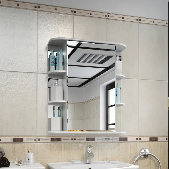 - Функциональность: Система хранения с открытыми полками и дверками делает зеркальный шкаф удобным и практичным.
