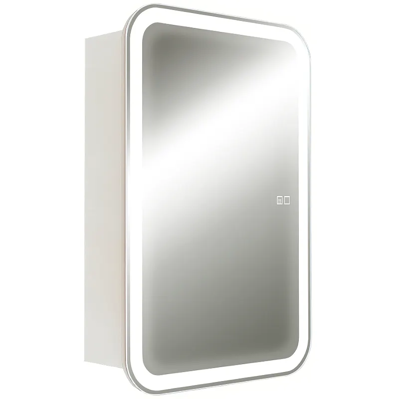 - Подогрев и розетка: Зеркало оснащено функцией подогрева, предотвращающей запотевание, а встроенная розетка позволяет подключать необходимые устройства прямо в ванной комнате.