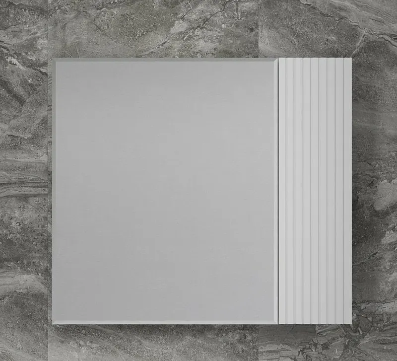 Зеркальный шкаф в современном стиле с белым рифленым софт покрытием добавит изысканности в интерьер вашей ванной комнаты. -