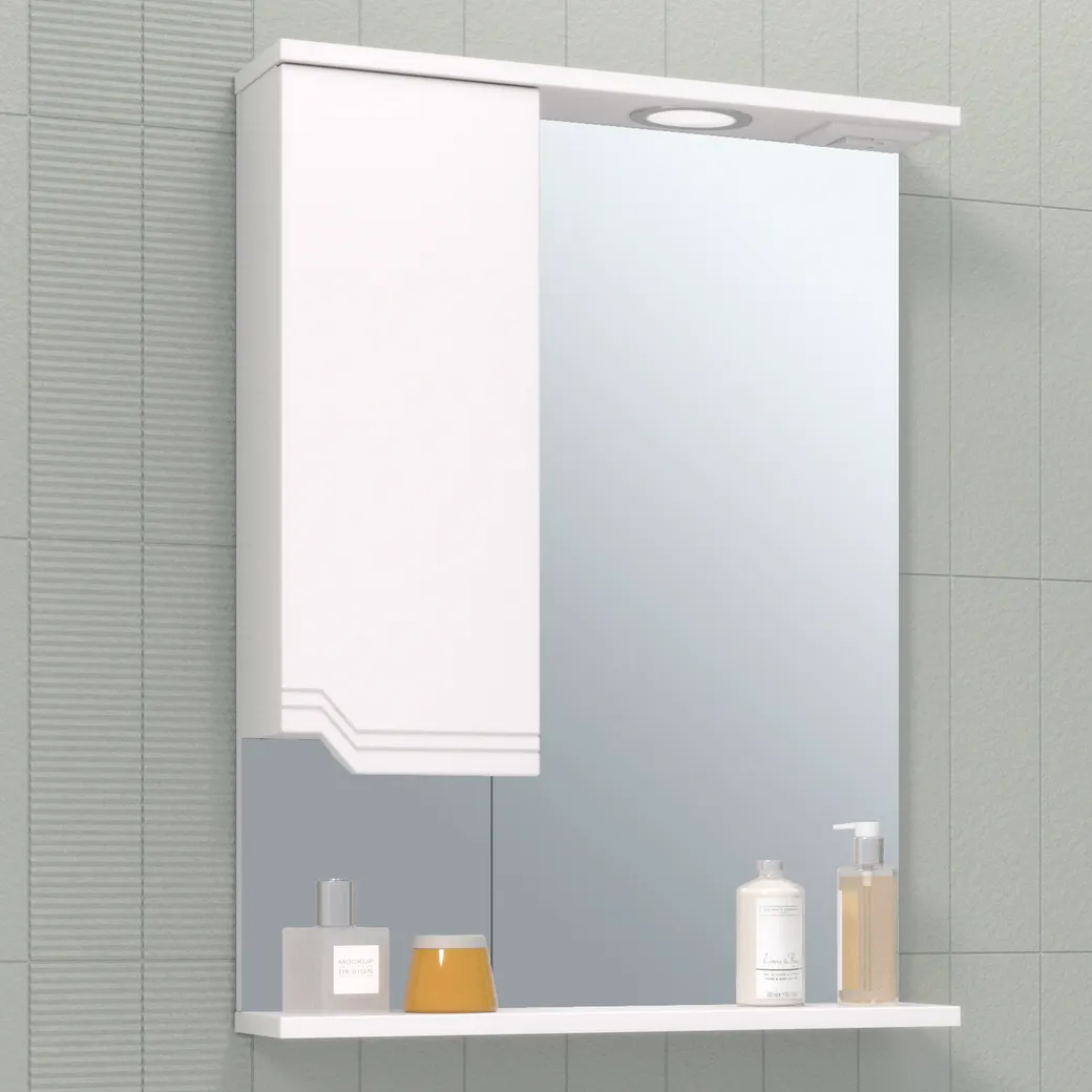 Коллекция мебели VIKTORIA выделяется своей изысканностью и простотой. Благодаря тонким элегантным линиям фрезеровок, плавным изгибам вырезов под ручку и удобной чаше овальной формы комплект смотрится легко и компактно в любом интерьере, не вызывая ощущения нагромождения. Для покрытия фасадов и боковин мебели использованы высококачественная полиуретановая эмаль и лак производства Италии, имеющие высокую устойчивость к механическим и климатическим нагрузкам. Повышенная влагостойкость не даёт воде испортить покрытие. Эмаль не пойдёт трещинами и не потеряет насыщенности цвета со временем. Зеркальный шкаф VIKTORIA 55см со шкафчиком слева оснащен одним врезным светодиодным светильником 220В и блоком розетка/выключатель. Зеркало не боится влаги и не мутнеет со временем. Дверца на петлях с доводчиками закрывается плавно и мягко. Внутри шкафа - одна встроенная полка.