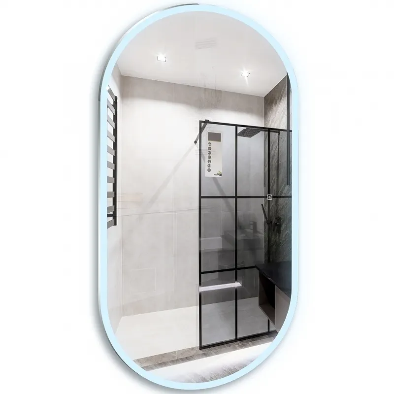 - Сенсорный выключатель с диммером: позволяет регулировать освещение, что делает данное зеркало идеальным выбором для ванной комнаты.