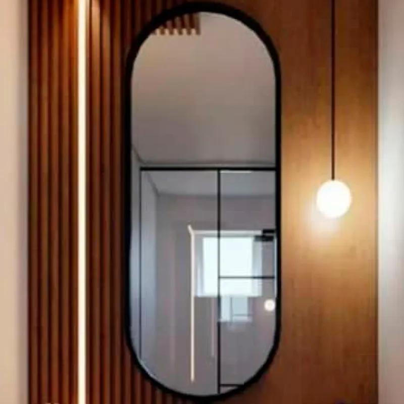 - Округлая форма зеркала: Элегантная овальная форма добавляет изысканности и визуально расширяет пространство.