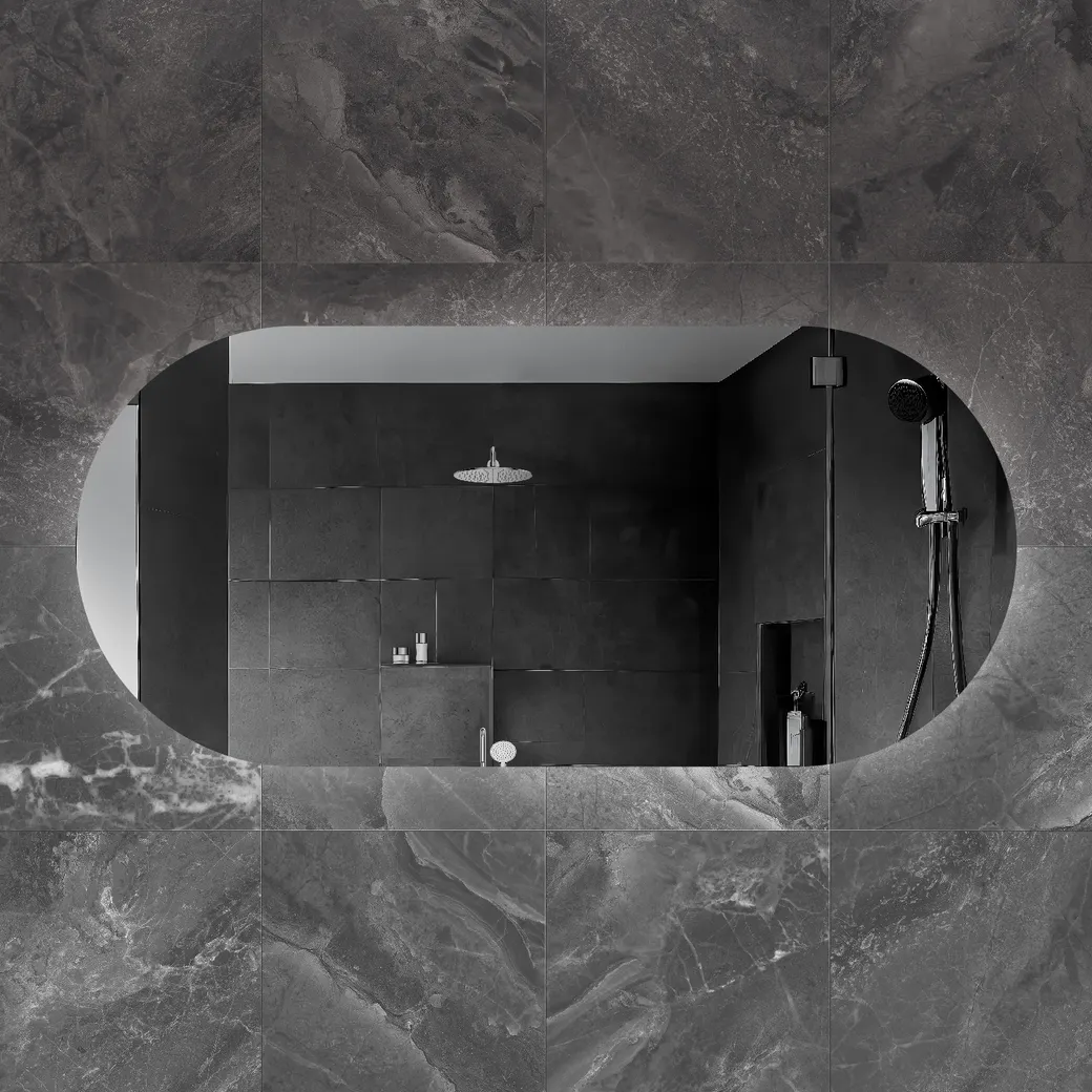 - Контурная подсветка: Зеркало для ванной с контурной подсветкой создаёт мягкое освещение, которое способствует комфортному использованию даже в тёмное время суток.
