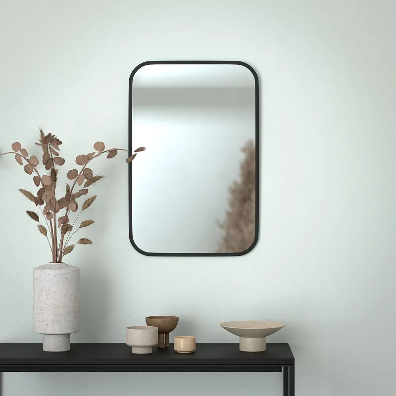 - Эстетичный дизайн: Современный стиль и черная окантовка зеркала прекрасно дополнят интерьер любой ванной комнаты.