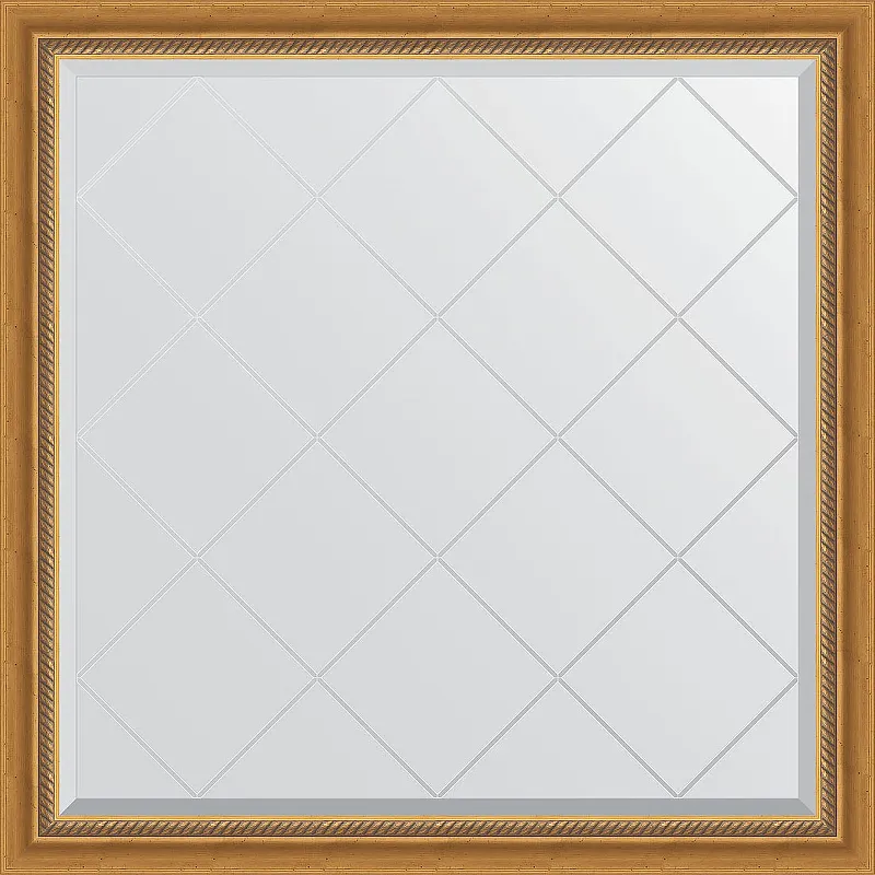Зеркало Evoform Exclusive-G 103х103 BY 4432 с гравировкой в багетной раме - Состаренное золото с плетением 70 мм