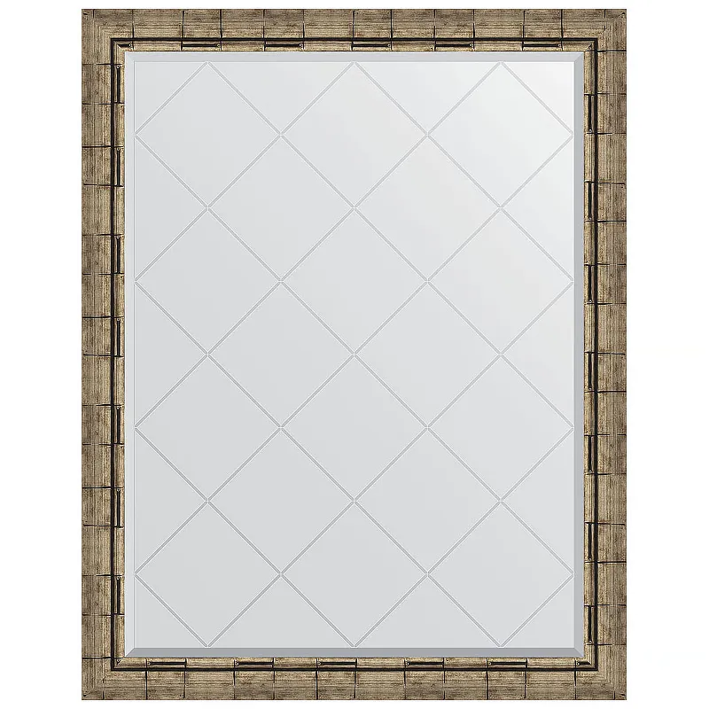 Зеркало Evoform Exclusive-G 118х93 BY 4351 с гравировкой в багетной раме — Серебряный бамбук 73 мм