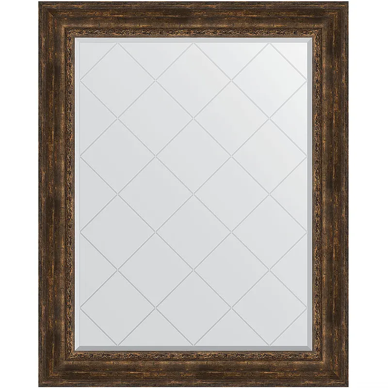 Зеркало Evoform Exclusive-G 127х102 BY 4387 с гравировкой в багетной раме - Состаренное дерево с орнаментом 120 мм