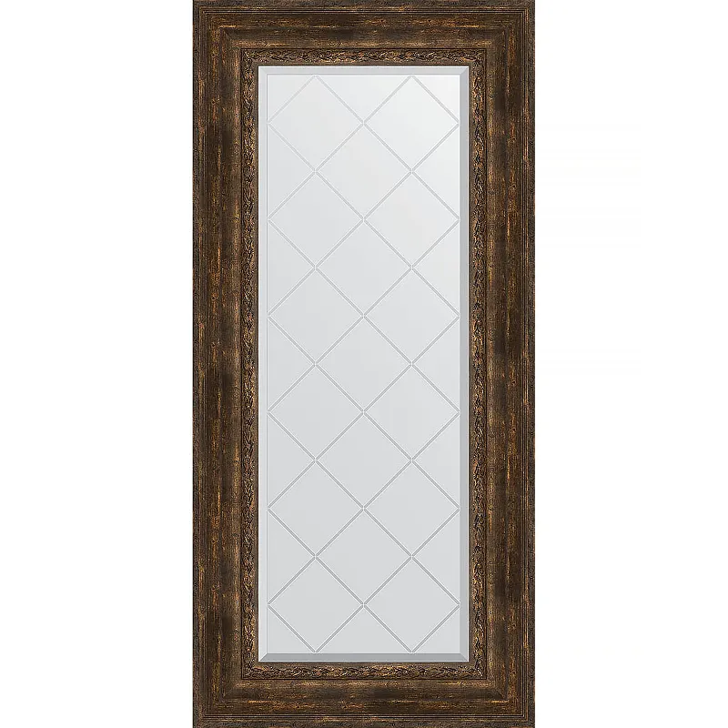 Зеркало Evoform Exclusive-G 132х62 BY 4086 с гравировкой в багетной раме - Состаренное дерево с орнаментом 120 мм