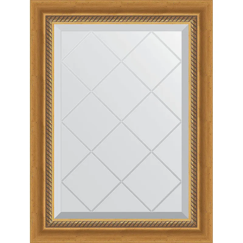 Зеркало Evoform Exclusive-G 71х53 BY 4002 с гравировкой в багетной раме - Состаренное золото с плетением 70 мм