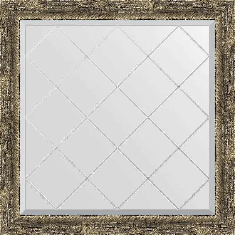 Зеркало Evoform Exclusive-G 83х83 BY 4307 с гравировкой в багетной раме - Старое дерево с плетением 70 мм