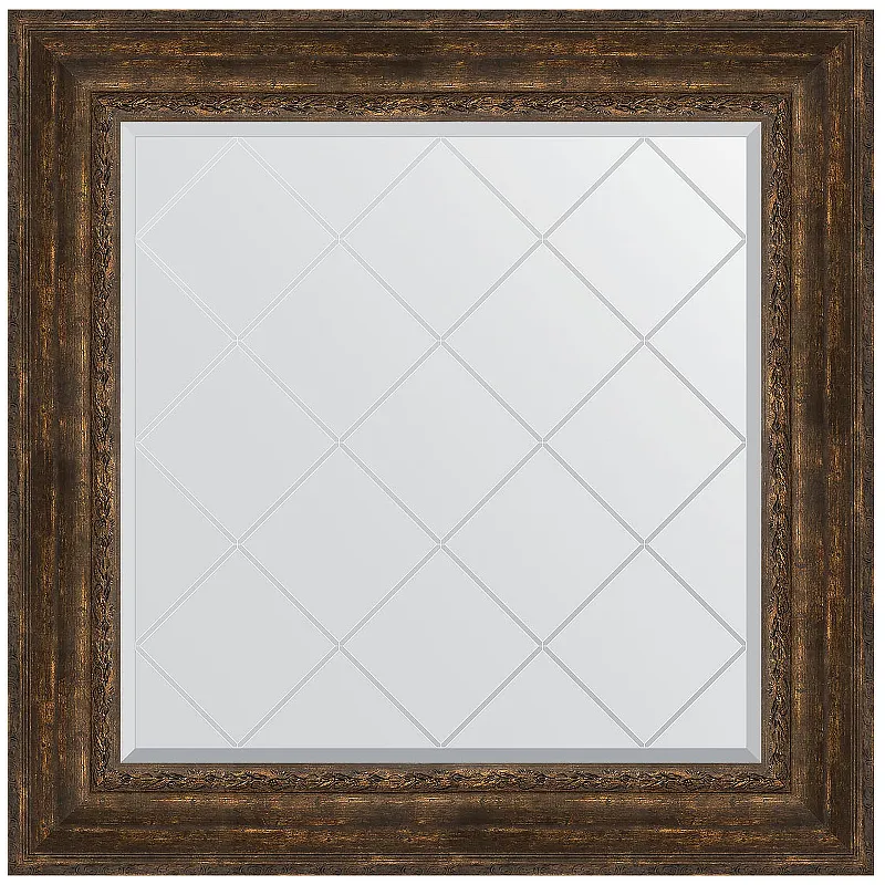 Технические характеристики Зеркало Evoform Exclusive-G 92х92 BY 4344 с гравировкой в багетной раме - Состаренное дерево с орнаментом 120 мм