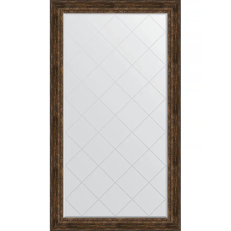 Зеркало Evoform Exclusive-G Floor 207х117 BY 6380 с гравировкой в багетной раме - Состаренное дерево с орнаментом 120 мм