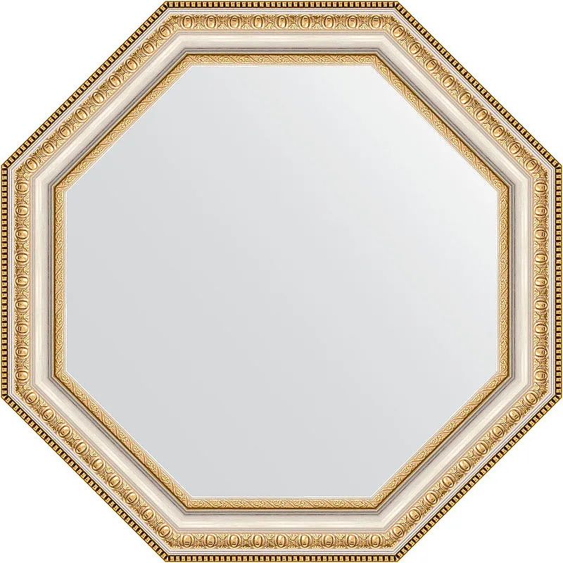 Зеркало Evoform Octagon — это стильное и функциональное решение для вашей квартиры. Изготовленное из высококачественного зеркального полотна AGC Mirox MNGE, данное зеркало идеально подходит для помещений с повышенной влажностью и соответствует современным стандартам экологической безопасности. Восьмиугольная форма и уникальный дизайн рамы «Золотые бусы на серебре» придадут вашему интерьеру изысканный вид, удовлетворяя потребности в стильном зеркале для стандартной ванной комнаты.