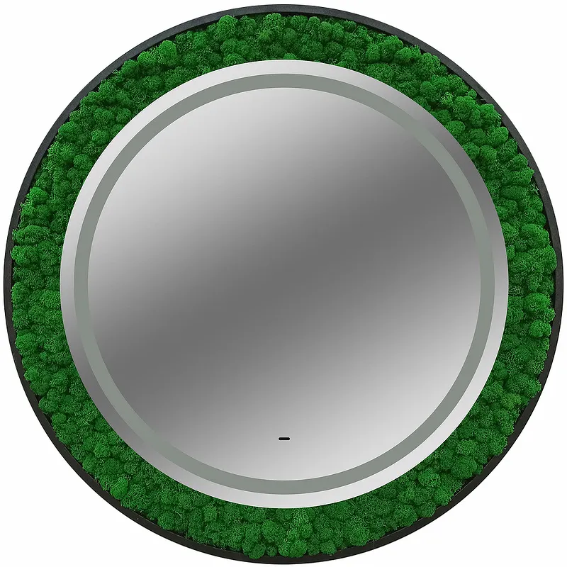 - Изысканный дизайн: Зеркало выполнено в округлой форме и оснащено рамой из стабилизированного мха, что добавляет уникальности и природной эстетики.