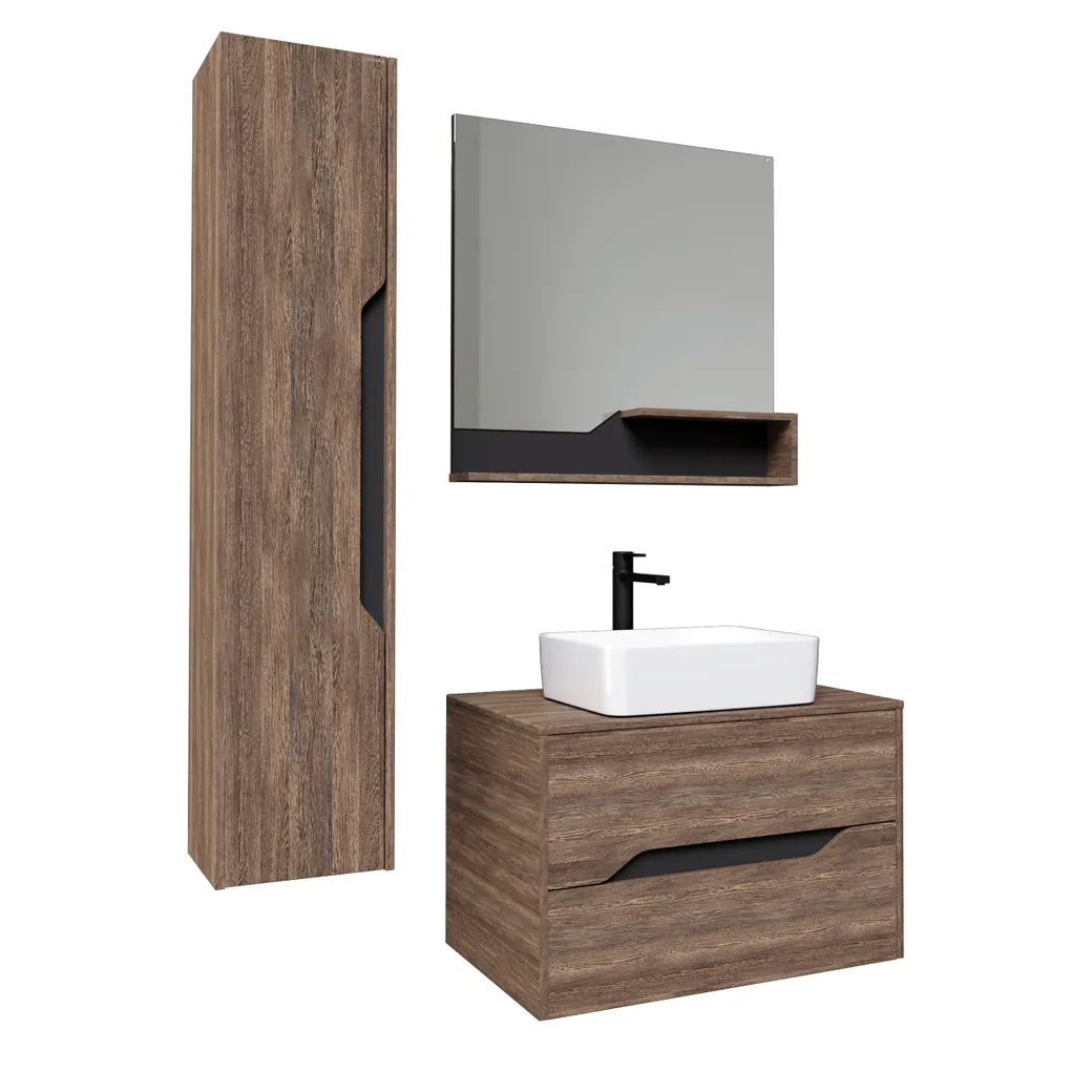 Зеркало Лайф 80 см выглядит оригинально и эксклюзивно. Ассиметричные линии и детали придают динамики ванной комнате. Двухярусная открытая полка дает быстрый доступ к косметике и предметам гигиены. Пленка в цвете графит на задней стенке защищает зеркальную поверхность от загрязнений и брызг. Зеркало изготовлено из влагостойких материалов, устойчивое к механическим воздействиям, перепадам температуры и высокой влажности. Корпус ЛДСП графит, полка МДФ в пленке винтажное дерево темное. Подвесы для крепления зеркала - в комплекте.