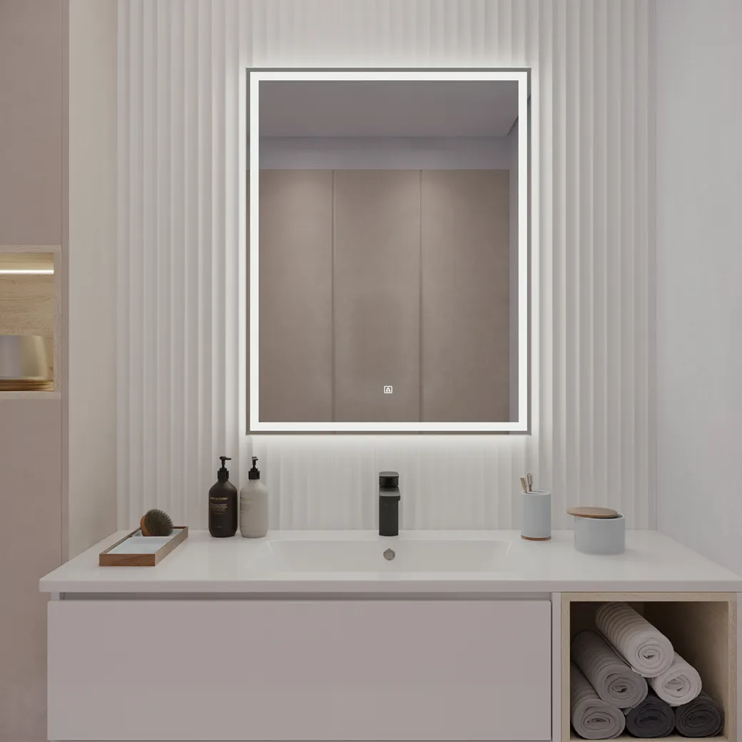 Зеркало CARRERA (70*90) /AQUA DE MARCO - одно из самых популярных моделей из нашего ассортимента, благодаря своей универсальной форме. Прямоугольные зеркала обычно относятся к классическим вариантам. Оснащение светодиодной подсветкой по периметру позволяет получить более правильные геометрические формы в организации пространства. Модель оснащена сенсорным выключателем с функцией плавного диммирования. Короткие и легкие касания кнопки включения в форме логотипа компании, расположенной на поверхности зеркального полотна, регулируют яркость свечения. Стандарт IP44 обеспечивает безопасную эксплуатацию во влажном помещении.