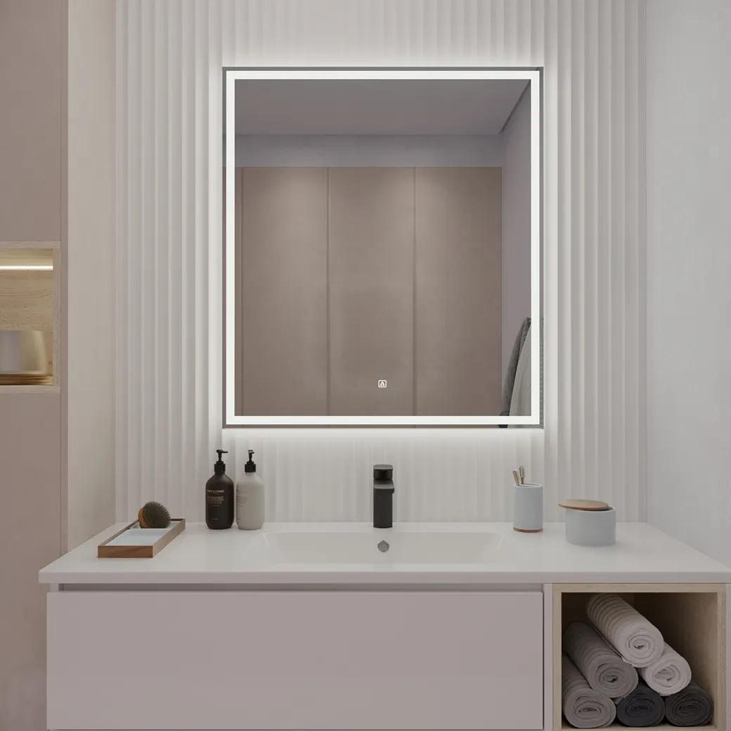 Зеркало CARRERA (80*90) /AQUA DE MARCO - одно из самых популярных моделей из нашего ассортимента, благодаря своей универсальной форме. Прямоугольные зеркала обычно относятся к классическим вариантам. Оснащение светодиодной подсветкой по периметру позволяет получить более правильные геометрические формы в организации пространства. Модель оснащена сенсорным выключателем с функцией плавного диммирования. Короткие и легкие касания кнопки включения в форме логотипа компании, расположенной на поверхности зеркального полотна, регулируют яркость свечения. Стандарт IP44 обеспечивает безопасную эксплуатацию во влажном помещении.