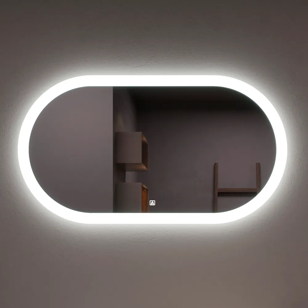 Зеркало FLY (100*55) /AQUA DE MARCO благодаря своей овальной форме имеет оригинальный вид и способно украсить помещение ванной комнаты любого стиля и дизайна. Светодиодное свечение по всему контуру достаточно яркое и не раздражает глаза, а сенсорный выключатель с диммированием делает его использование легким и удобным. С помощью коротких касаний кнопки можно регулировать подсветку зеркала и выставить ту степень яркости свечения, которая наиболее комфортна.