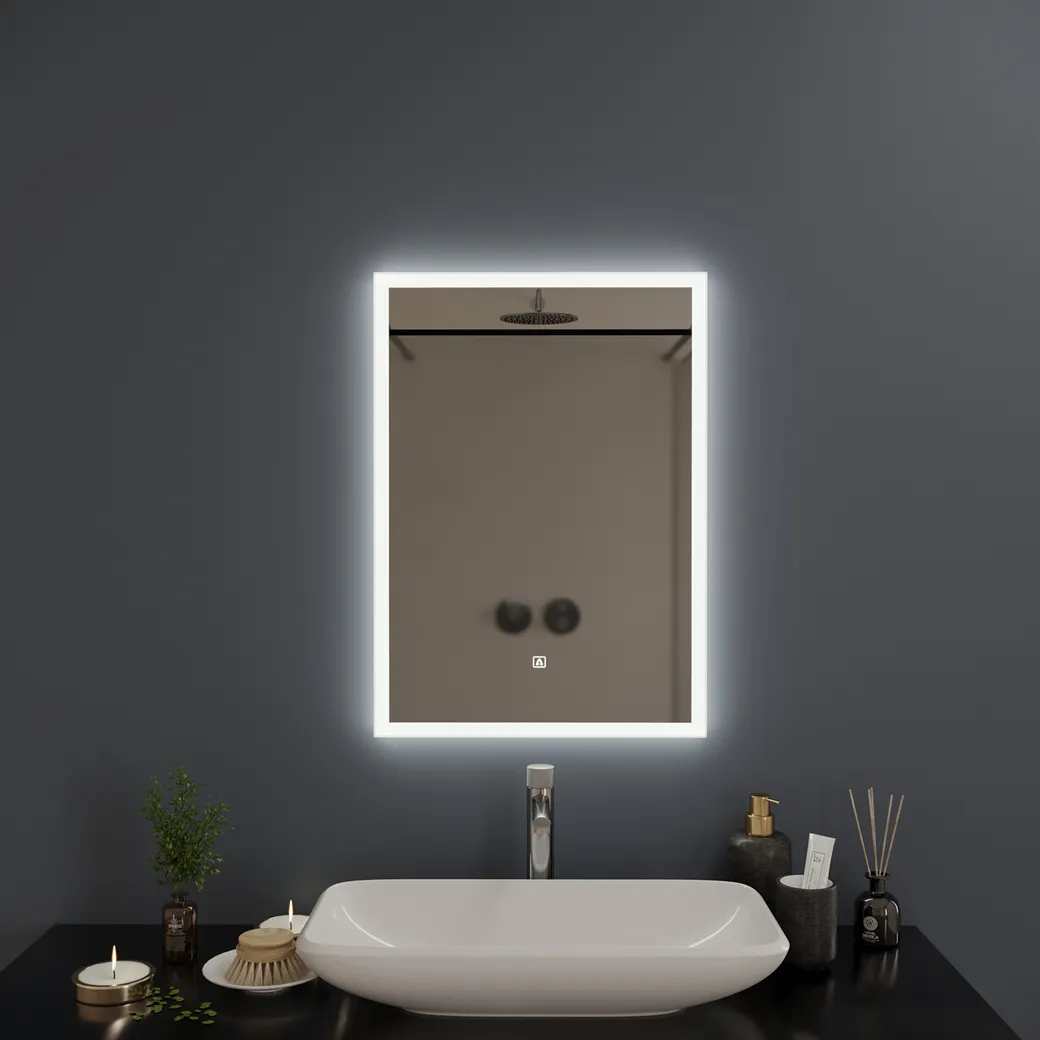Зеркало SIENA (50*70) /AQUA DE MARCO - прямоугольной формы, что делает его универсальным и удобным в использовании помещений разной площади. Оснащение светодиодной подсветкой по периметру позволяет получить более правильные геометрические формы в организации пространства. Короткие касания кнопки включения в форме логотипа компании, расположенной на поверхности зеркального полотна, меняют яркость свечения. Стандарт IP44 обеспечивает безопасную эксплуатацию во влажном помещении.
