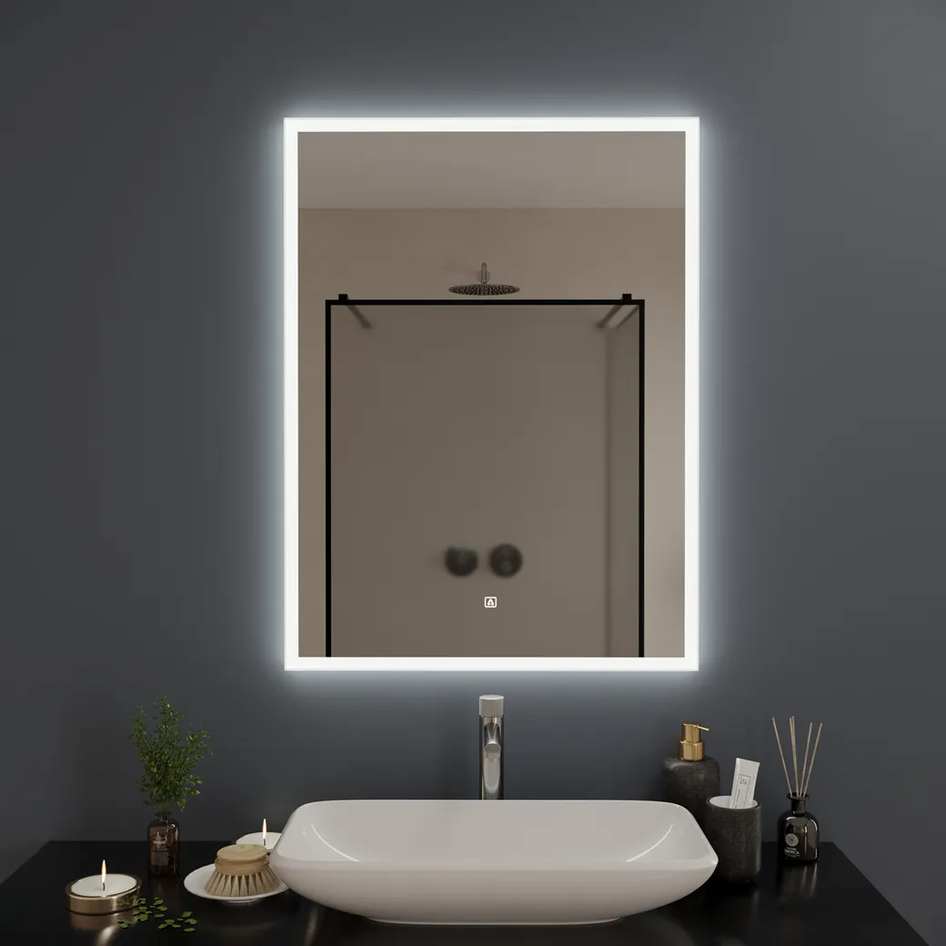 Зеркало SIENA (68,5*91,5) /AQUA DE MARCO - прямоугольной формы, что делает его универсальным и удобным в использовании помещений разной площади. Оснащение светодиодной подсветкой по периметру позволяет получить более правильные геометрические формы в организации пространства. Короткие касания кнопки включения в форме логотипа компании, расположенной на поверхности зеркального полотна, меняют яркость свечения. Стандарт IP44 обеспечивает безопасную эксплуатацию во влажном помещении.