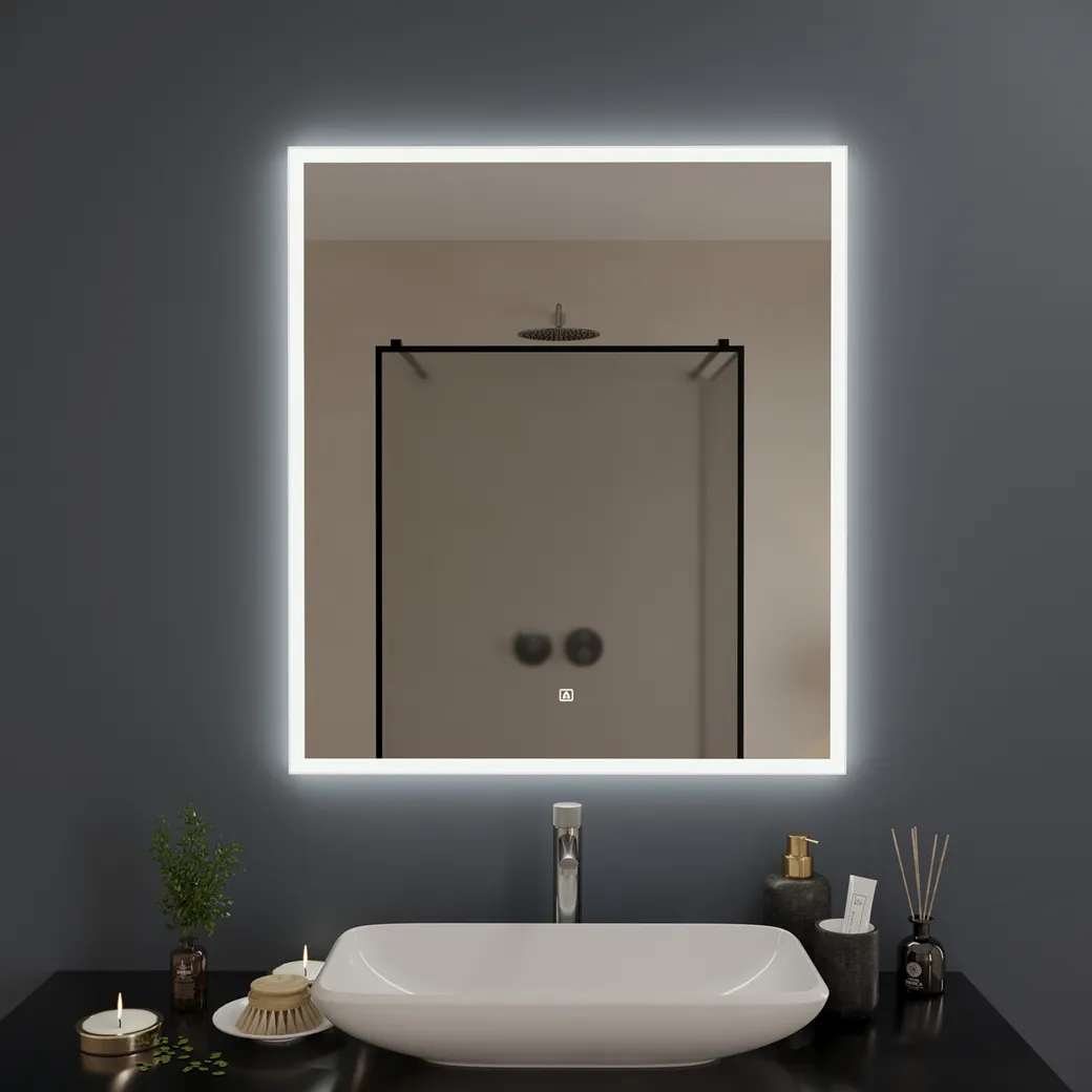 Зеркало SIENA (80*90) /AQUA DE MARCO - прямоугольной формы, что делает его универсальным и удобным в использовании помещений разной площади. Оснащение светодиодной подсветкой по периметру позволяет получить более правильные геометрические формы в организации пространства. Короткие касания кнопки включения в форме логотипа компании, расположенной на поверхности зеркального полотна, меняют яркость свечения. Стандарт IP44 обеспечивает безопасную эксплуатацию во влажном помещении.