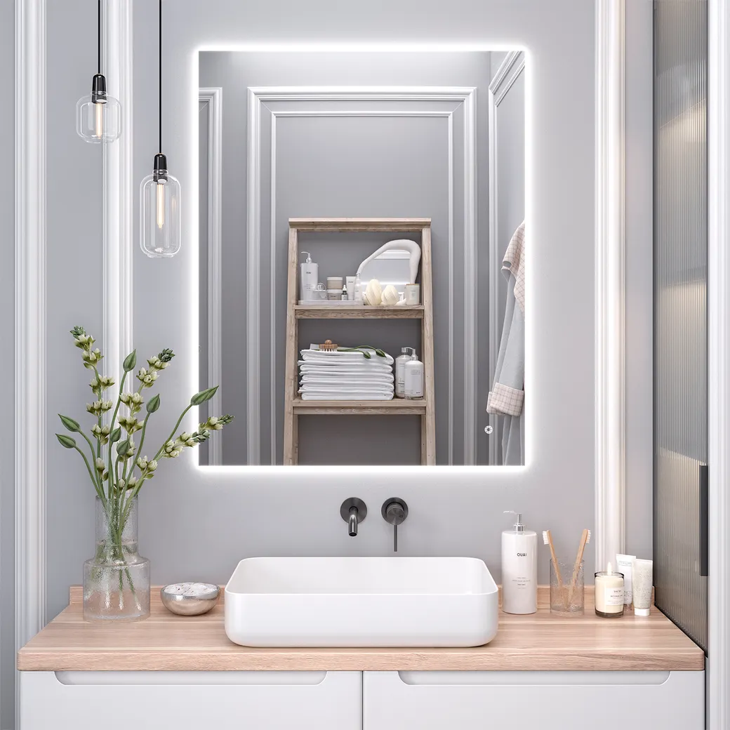 Зеркало с интегрированной LED-подсветкой SIRIUS обладает так называемым эффектом "парения", который очень оригинально смотрится в вечернее время при выключенном основном освещении в комнате. Полотно таких зеркал имеет размер, немного превышающий габариты корпуса. В сочетании с подсветкой такая конструкция при взгляде спереди создаёт ощущение, словно зеркало парит в воздухе в нескольких сантиметрах от стены. Ещё один плюс заключается в расположении подсветки, которая направлена из корпуса на стены. Если в помещении используется рельефная отделка стен или иная необычная фактура — "парящая" подсветка подчеркнёт и акцентирует на ней внимание. Зеркало выполнено из высококачественного зеркального полотна, которое обеспечивает отличное отражение без искажений. Благодаря прямоугольной форме данная модель не только выглядит стильно, но и позволяет сэкономить пространство в ванной комнате. Зеркало SIRIUS - универсальное: при желании можно легко поменять его ориентацию с вертикальной (80*100см) на горизонтальную (100*80см) и наоборот. Кнопка сенсорного выключателя в вертикальном положении зеркала расположена в нижнем левом углу, а в горизонтальном - в правом углу. Сенсорный выключатель с диммированием управляется легким касанием кнопки, расположенной на поверхности зеркального полотна. Короткое касание менее 0,5с – включение или выключение освещения. Длительное касание более 0,5с - увеличение или уменьшение яркости освещения. Светодиодная подсветка по всему периметру светит ярко, но не раздражающе, и потребляет минимум электричества.