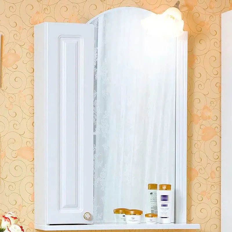 Зеркало со шкафом Бриклаер Анна 60 L 4627125411366 — идеальное решение для стандартной ванной комнаты. Это зеркало с подсветкой в классическом стиле подчеркнет элегантность вашего интерьера, обеспечивая удобное хранение благодаря закрытому шкафчику и открытой полочке.