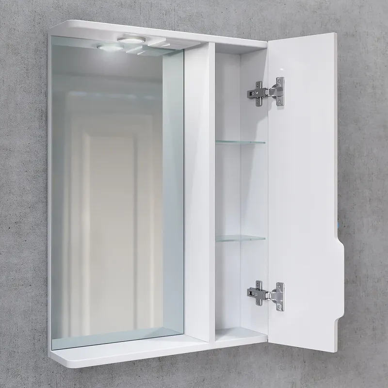 Зеркало со шкафом Jorno Moduo Slim 50 Mod.03.50/W с подсветкой — идеальное решение для тех, кто ищет стильное и функциональное дополнение к ванной комнате. Изготовленное в России, это зеркало сочетает в себе современный стиль и высокое качество материалов.