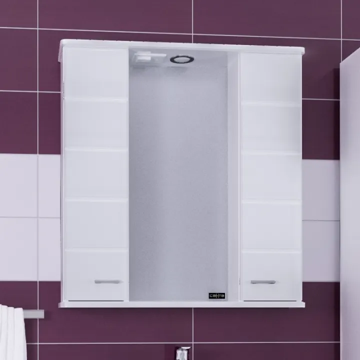 - Высокая влагостойкость: Фасад и корпус из МДФ/ЛДСП покрыты пленкой высокого качества, обеспечивающей долговечность и устойчивость к влаге. Это делает зеркало отличным выбором для ванной комнаты.