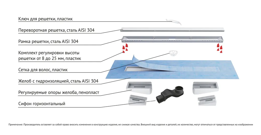 Душевой желоб Berges В1 Keramik это современное функциональное решение для оборудования водоотвода во внутренних помещениях. Выполнен из высококачественной нержавеющей стали AISI 304, что обеспечивает жесткую фиксацию в основании пола и длительное использование. Изоляционная мембрана, интегрированная в стальной корпус, гарантирует непроницаемость и совместима со всеми изоляционными материалами. Усовершенствованная система настройки высоты изделия позволяет выполнить легкую регулировку под заданную толщину покрытия, с минимальной высотой монтажа (заливки) - 65мм. Поворотный сифон с гидрозатвором имеет высокую пропускную способность 48 л/мин и оригинальную самопромывную конструкцию. Наличие съемной стальной рамки обеспечивает эстетичный внешний вид с минимальными зазорами, возможность легкого переворота решетки, а также отсутствие влаги в местах примыкания. Съемная сетка для волос (грязеуловитель) предотвращает попадание мусора в сифон и позволяет легко проводить очистку желоба. Благодаря возможности переворота решетки и вклейки плитки, вы ощутите цельность пространства в вашей ванной комнате и душевой.
