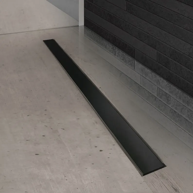 Желоб BERGES водосток напольный С1 Norma 700 нержавеющая сталь, матовый черный, S-сифон D50 боковой арт-095138